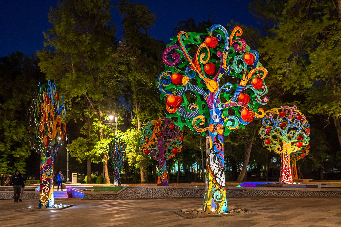 Интересные фотографии можно начинать снимать уже возле фонтана, на фоне ретро-арки, возведенной в 1955 году. Далее открывается цветочная панорама, с гармонично расположенными клумбами. Для удобной навигации у входа находится схематический указатель. Пойдешь налево – аллея приведет к кинотеатру, аттракционам, колесу обозрения и живописному озеру. Вдоль озера путь ведет к прекрасному зоопарку. Пойдешь прямо – аллея упрется в спортивный комплекс. Пойдешь направо – и откроется возможность прокатиться всей семьей на сказочном паровозике. Вся территория продумана для приятного отдыха в любой точке парка. Интересные фотографии можно начинать снимать уже возле фонтана, на фоне ретро-арки, возведенной в 1955 году. Далее открывается цветочная панорама, с гармонично расположенными клумбами. Для удобной навигации у входа находится схематический указатель. Пойдешь налево – аллея приведет к кинотеатру, аттракционам, колесу обозрения и живописному озеру. Вдоль озера путь ведет к прекрасному зоопарку. Пойдешь прямо – аллея упрется в спортивный комплекс. Пойдешь направо – и откроется возможность прокатиться всей семьей на сказочном паровозике. Вся территория продумана для приятного отдыха в любой точке парка.