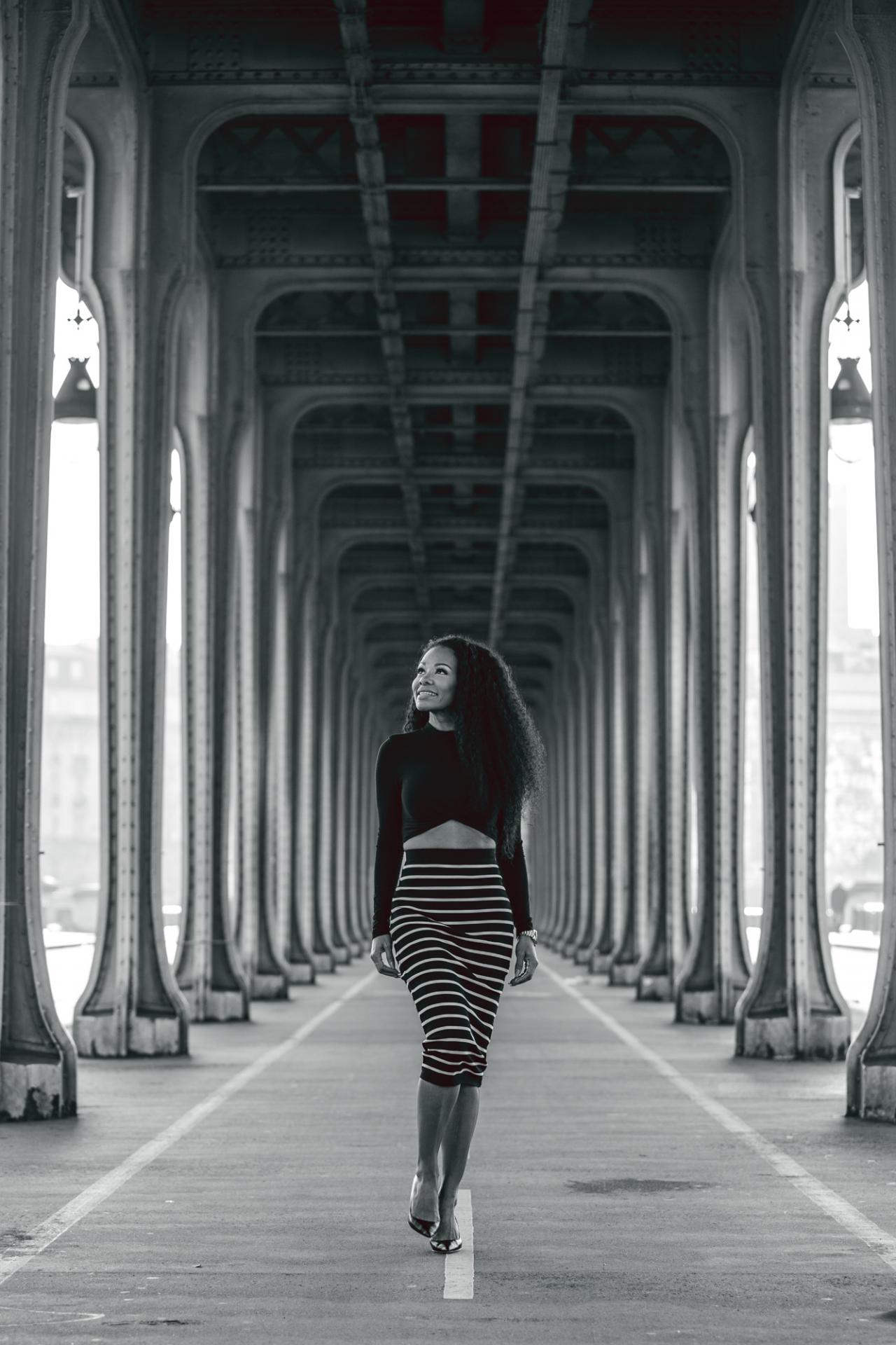 Во-первых, сам мост довольно фотогеничен и представляет собой некий тунель в эйфелевом стиле - можно поиграть перспективами.