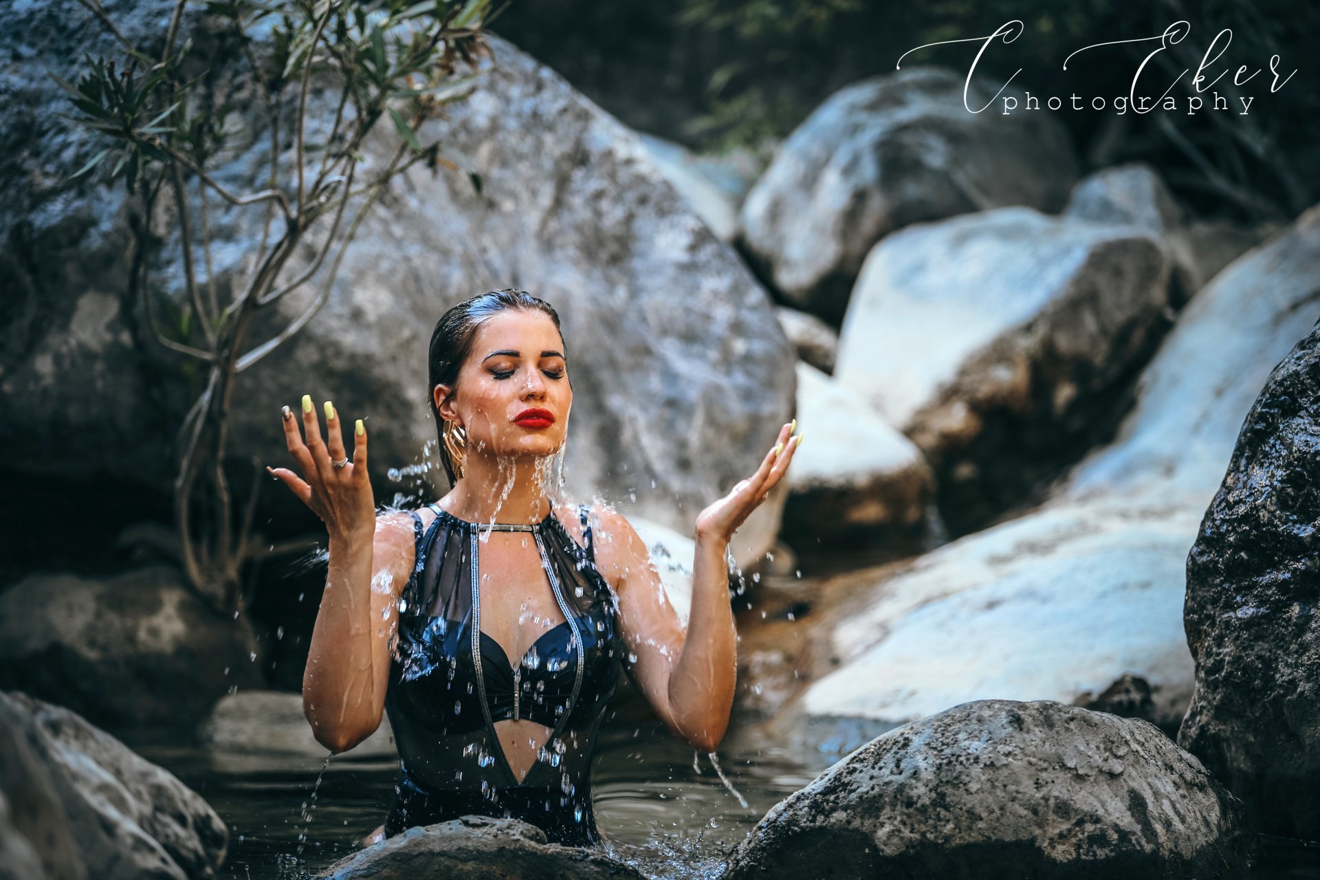 Красивые мини водопады, бирюзовая вода, камни создают прекрасную атмосферу для фотосессии и хорошего отдыха.