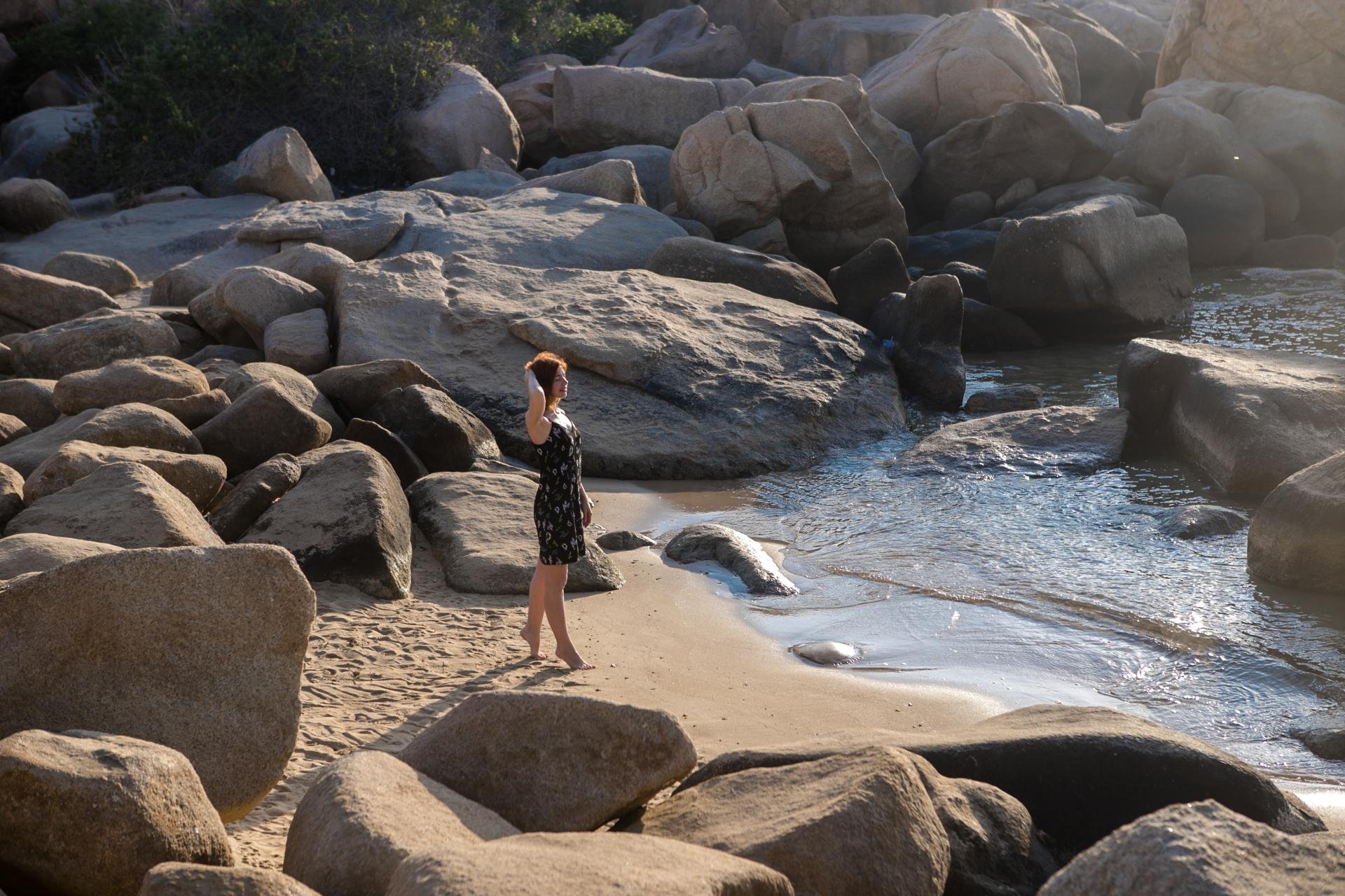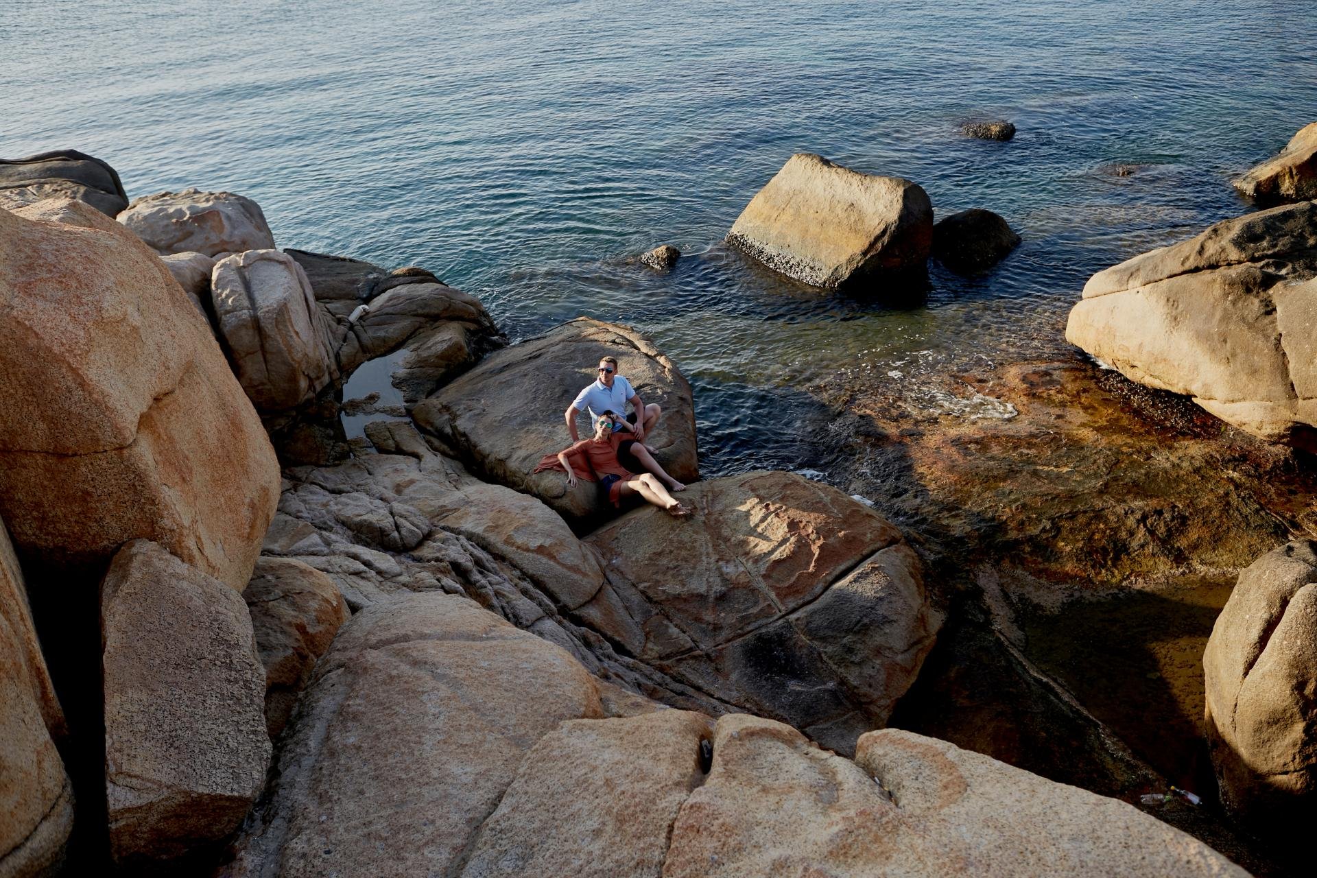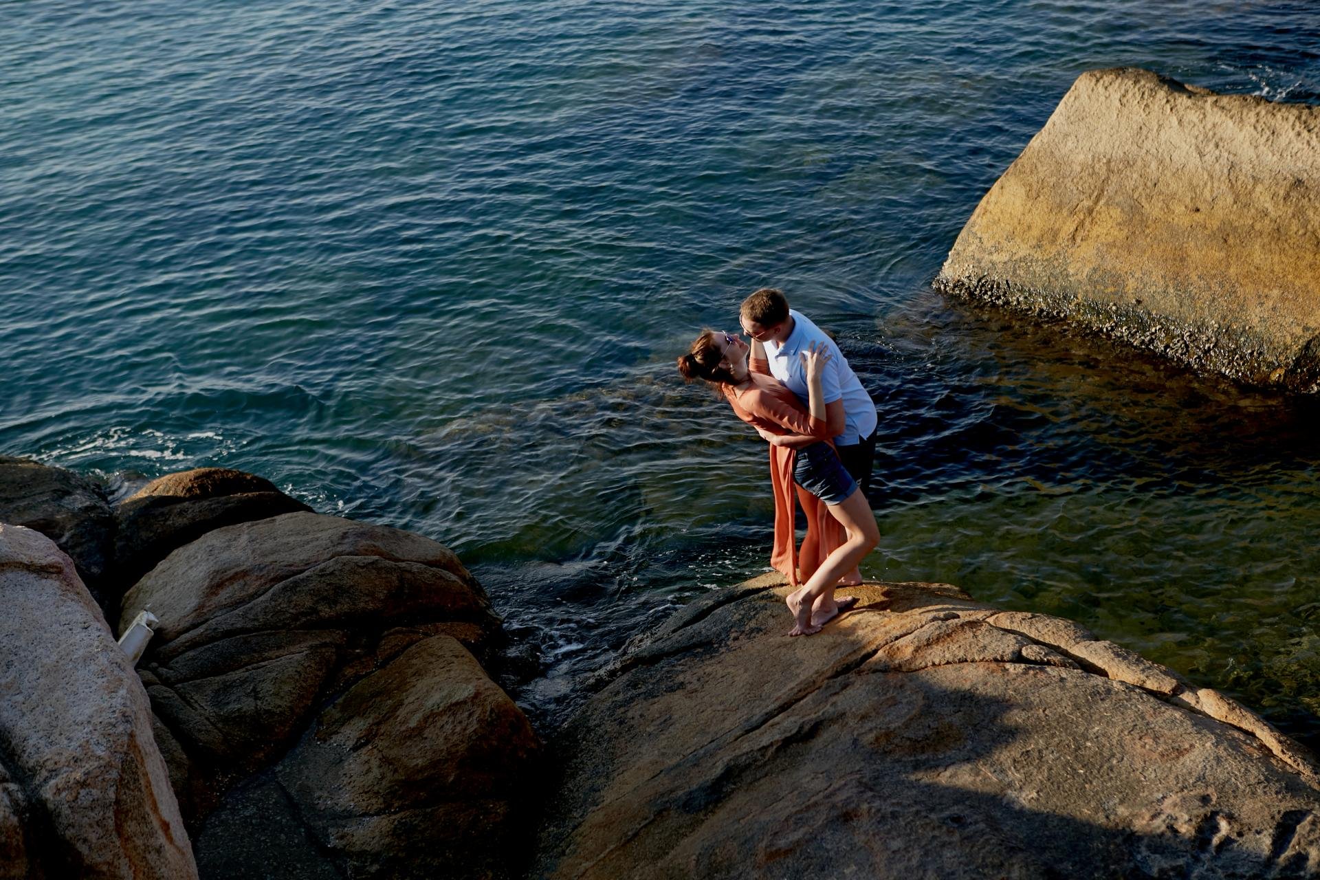 Каменный мыс уходящий в море, с огромными валунами, популярное туристическое место на севере города