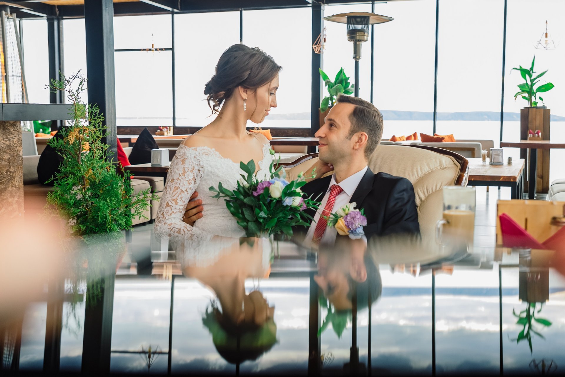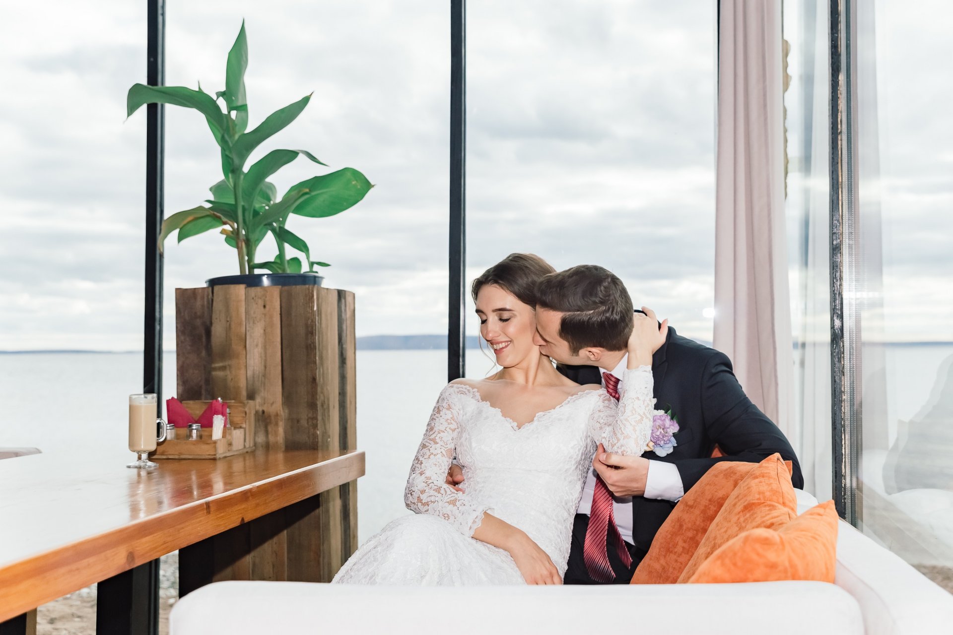 Приятный интерьер с большими окнами с видом на Волгу
