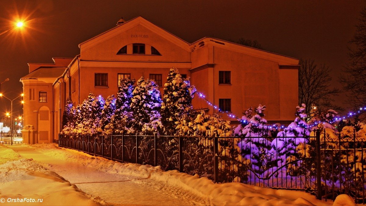 Красивое здание, уютный сквер с живописным деревянным мостиком у пруда. В начале августа цветут кувшинки. Впрочем, зимний вид также оригинален.
