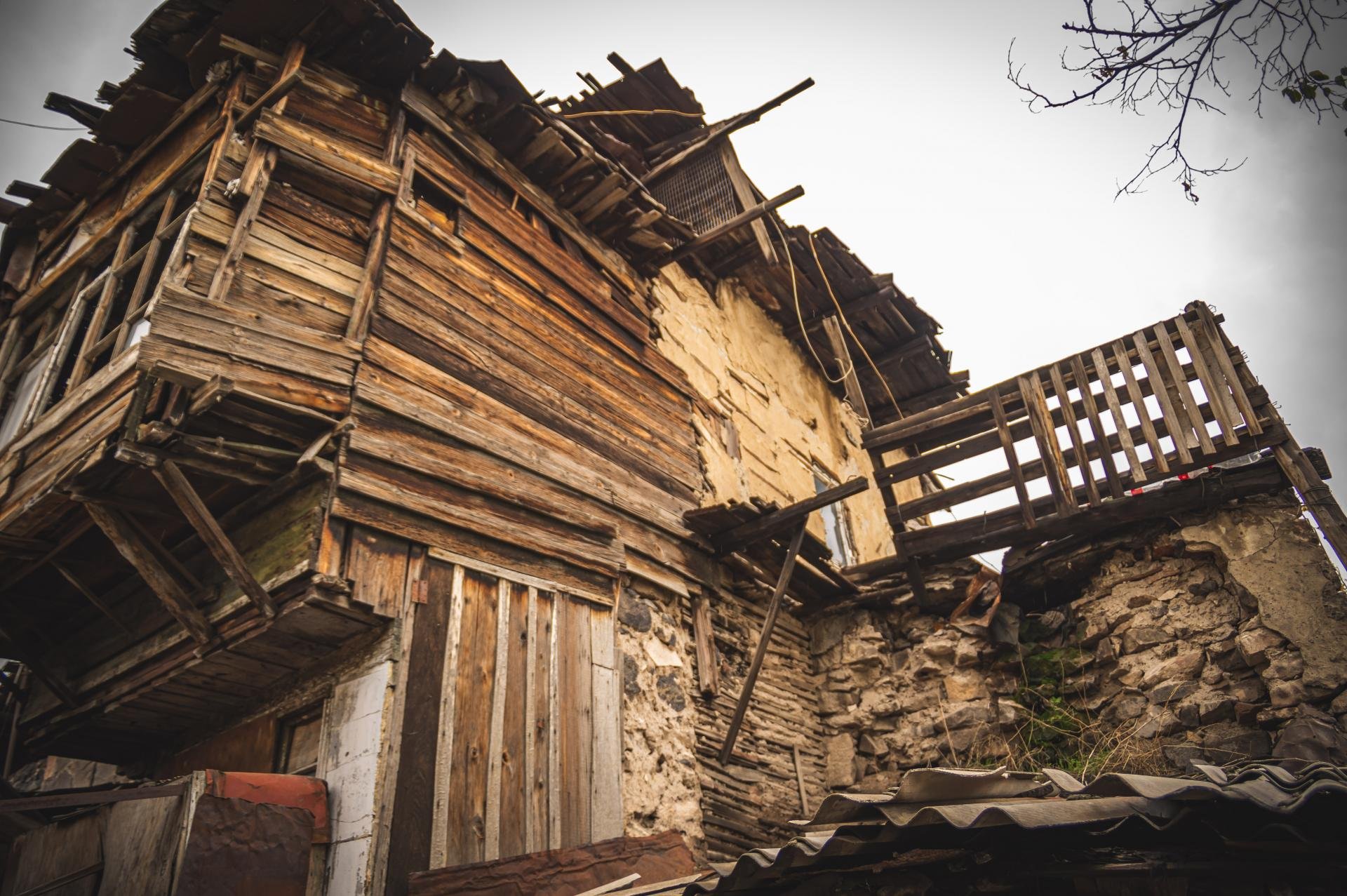 Это трущобы в центре города, с множеством узких проездов и старыми домами.