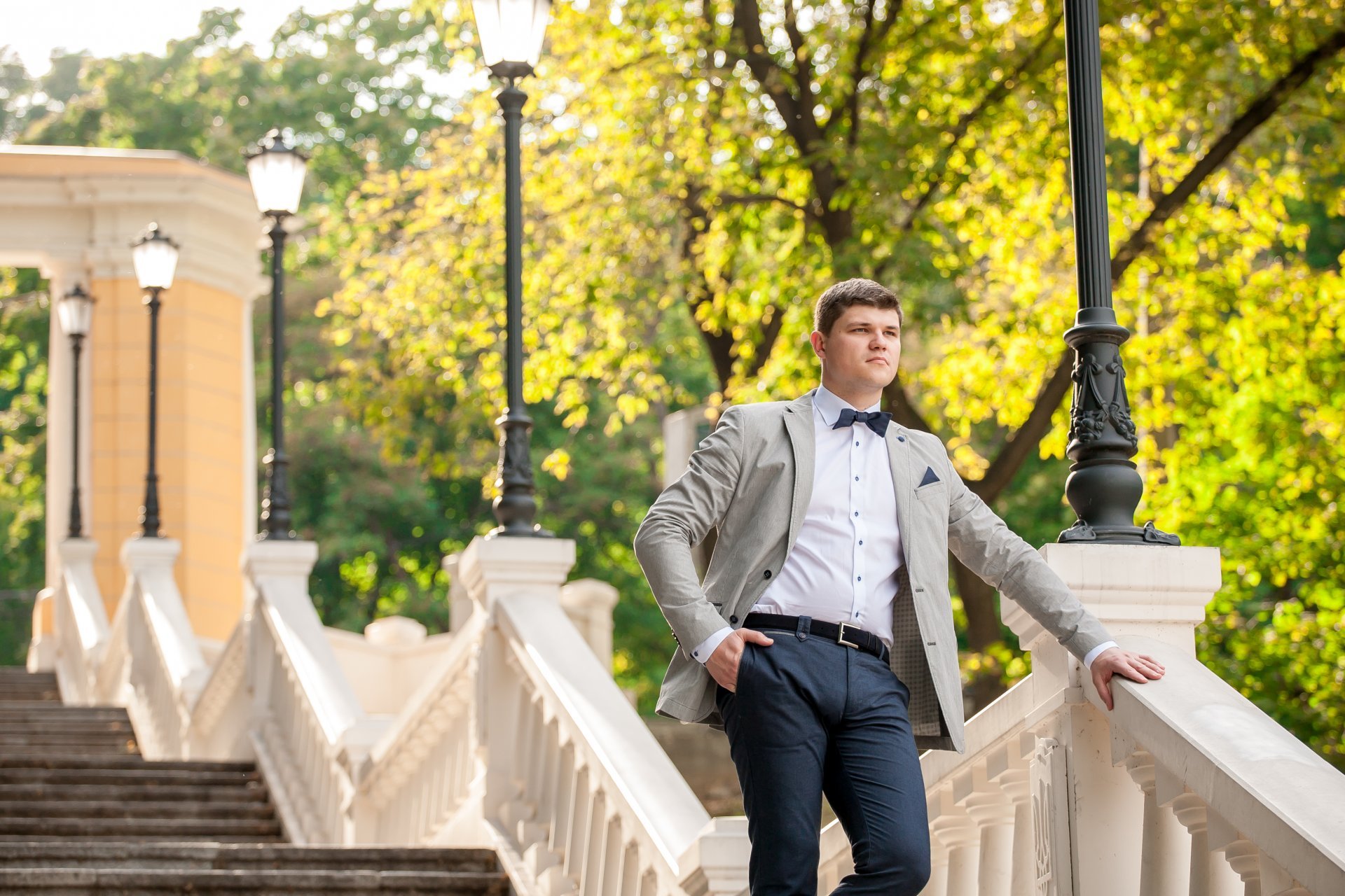 Красивая лестница, на ней можно сделать красивые кадры и с неё есть красивый вид. Хорошее место для съёмки