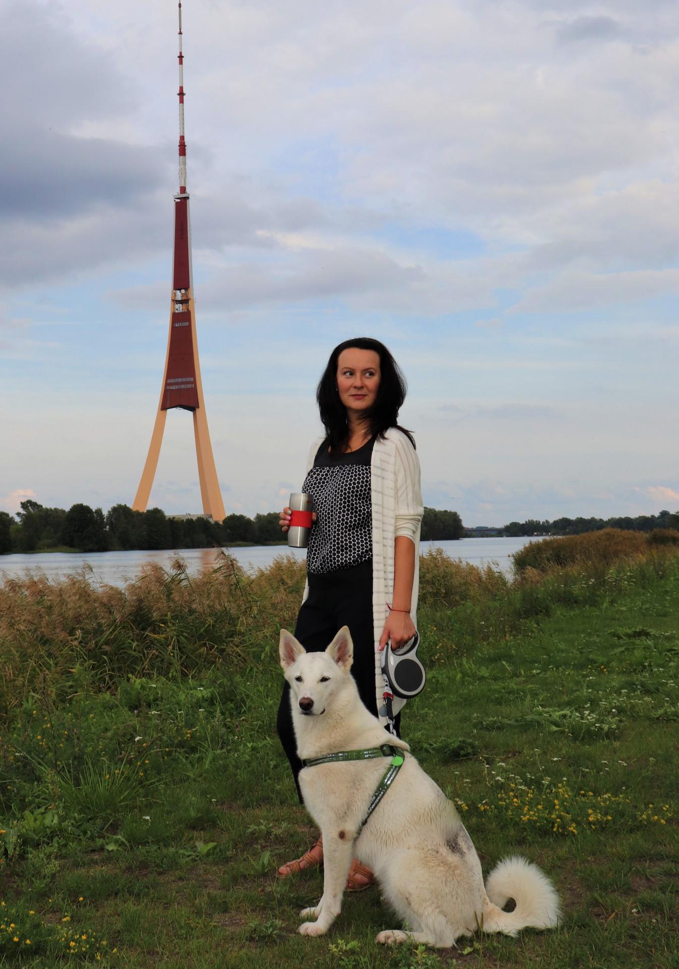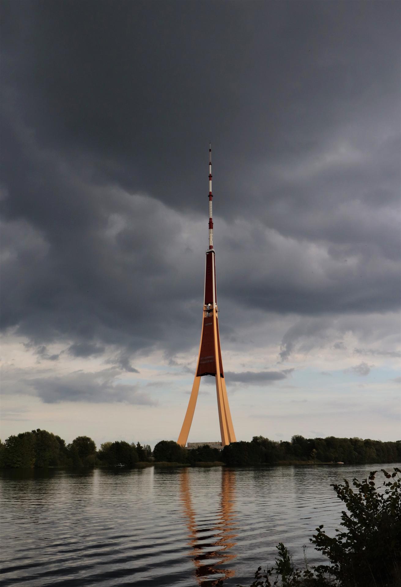 Красивый вид на реку Даугава, на город, на телевизионную башню.