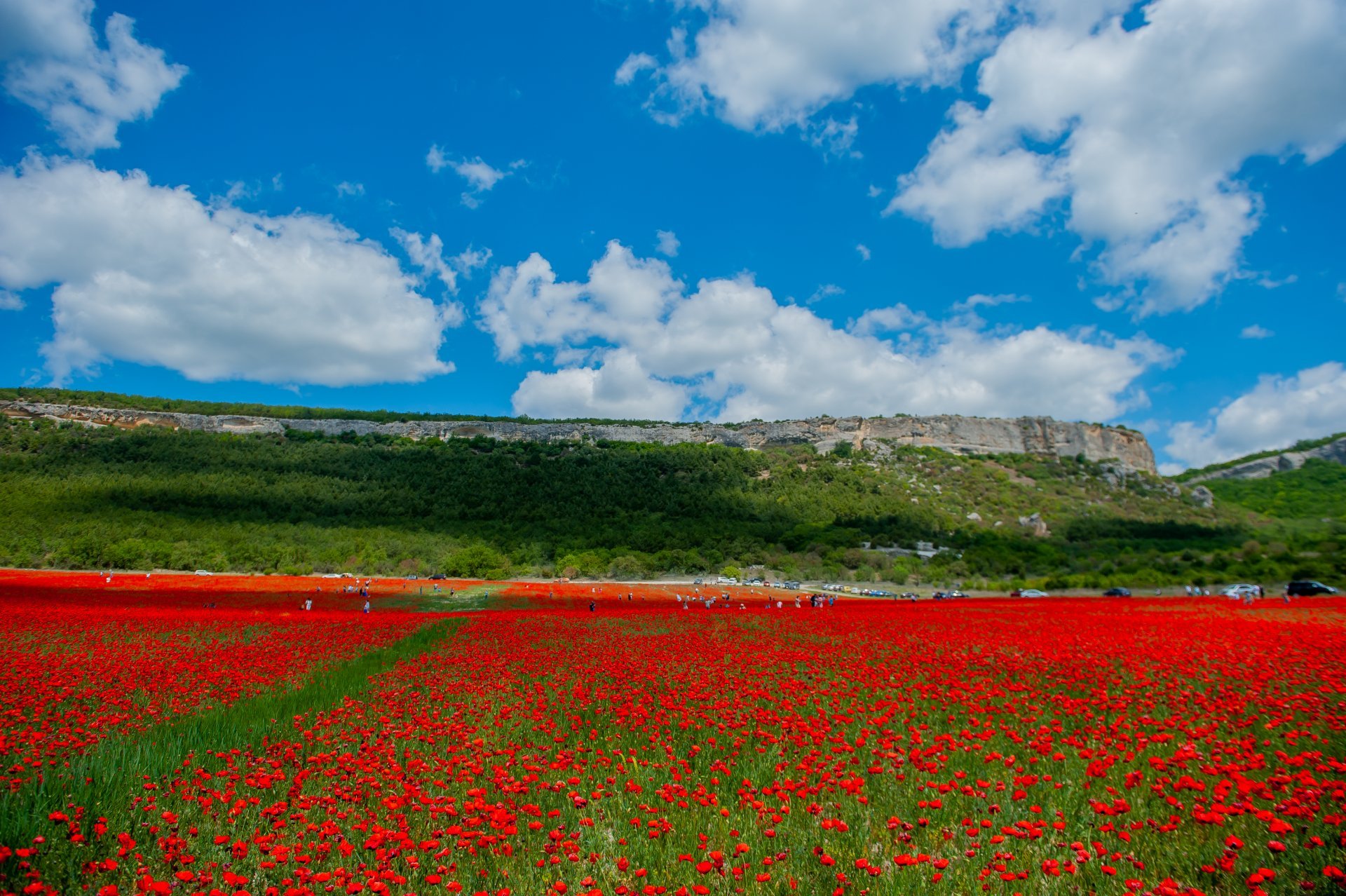 Замечательные виды гор на фоне моря дикого мака.
