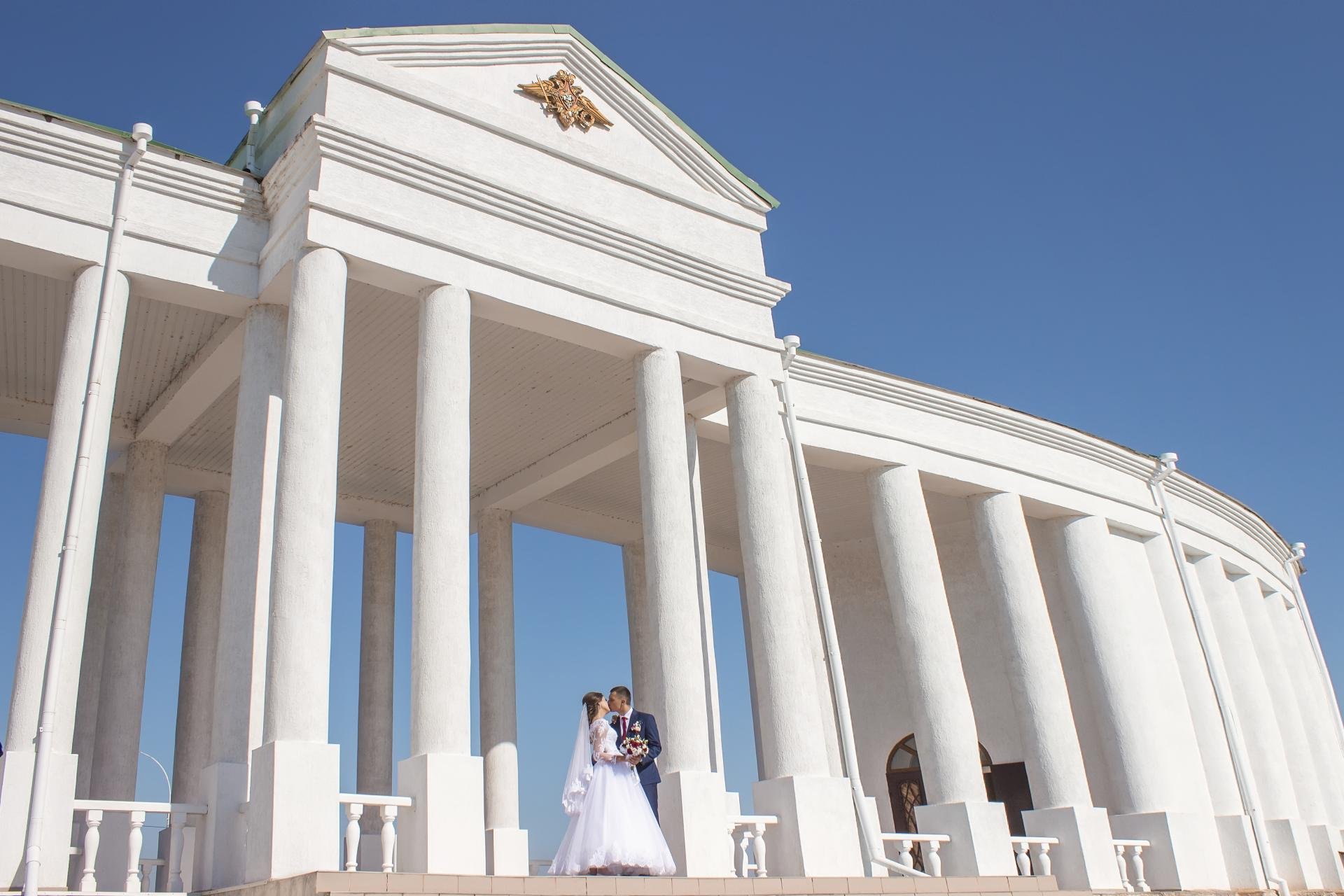 Архитектурное сооружение с невероятно высокими белыми колоннами в греческом стиле