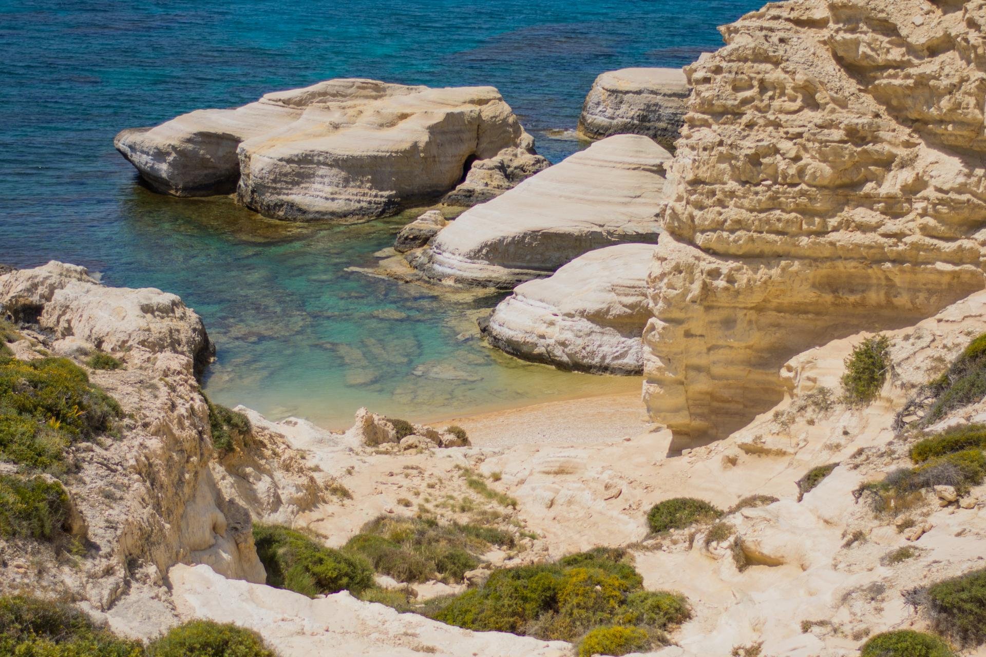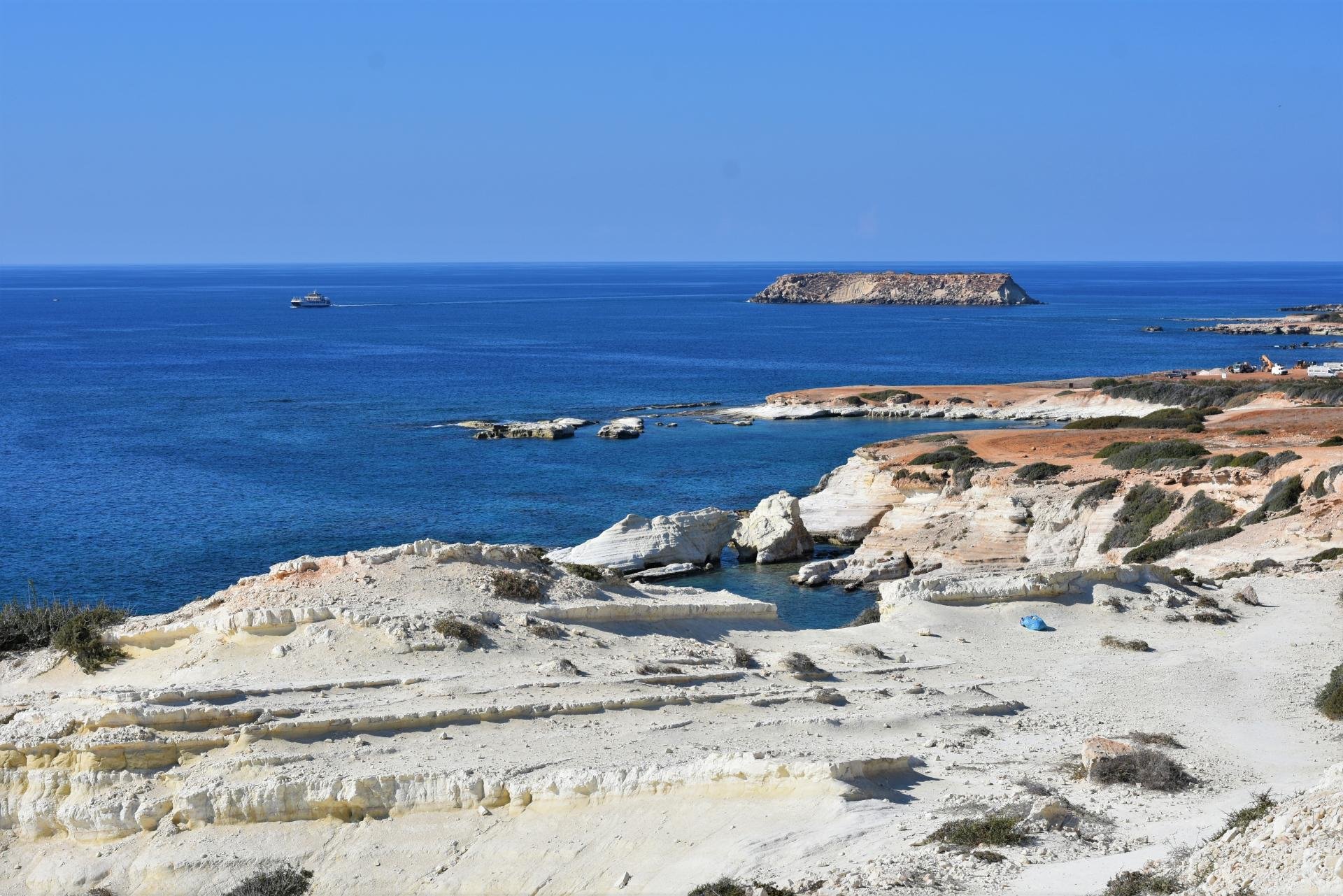 Высокие белые скалы, дикая бухта для купания где есть морские пещеры . Восхитительное по своей красоте место, которое находится недалеко от Пафоса, на границе с заповедником Акамас. Камни на столько белые что экспонометр зашкаливает.
