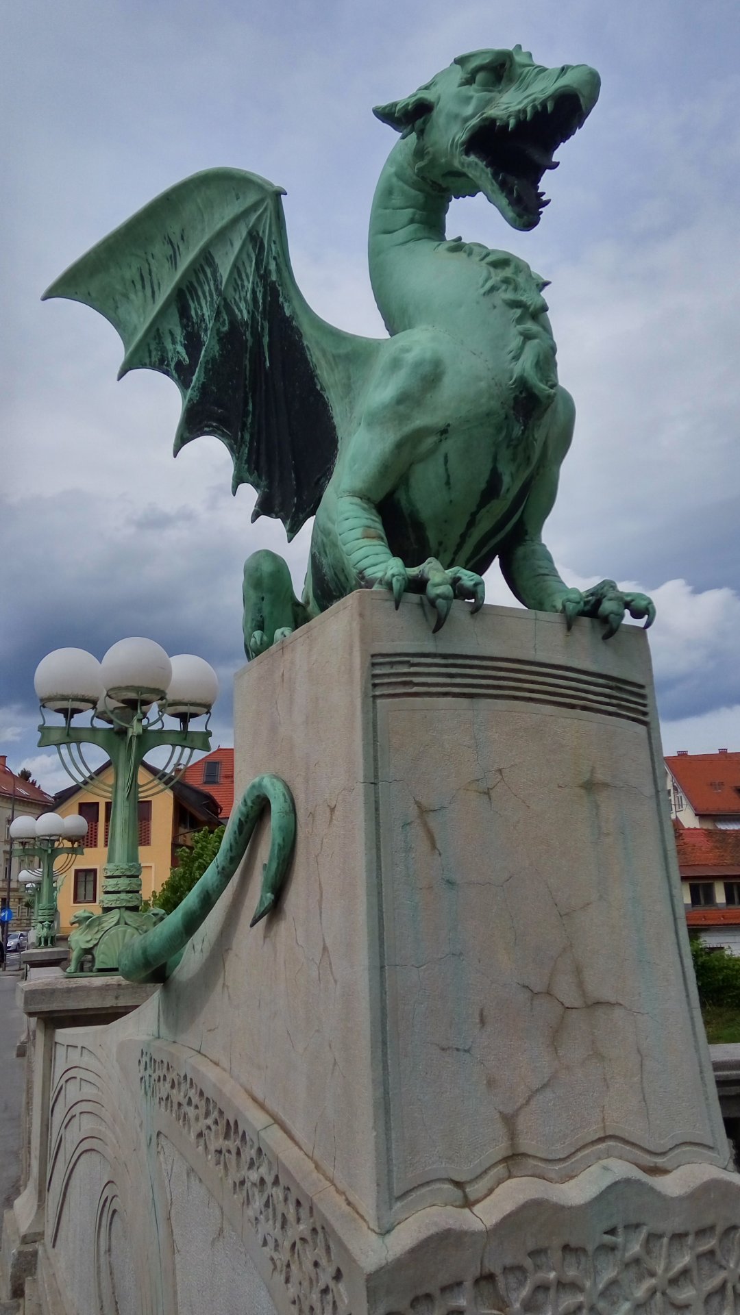 Автомобильный мост через реку Любляницу в городе Любляне, одна из самых известных и узнаваемых достопримечательностей столицы Словении, памятник архитектуры. С обеих сторон мост охраняют статуи драконов - символа Любляны