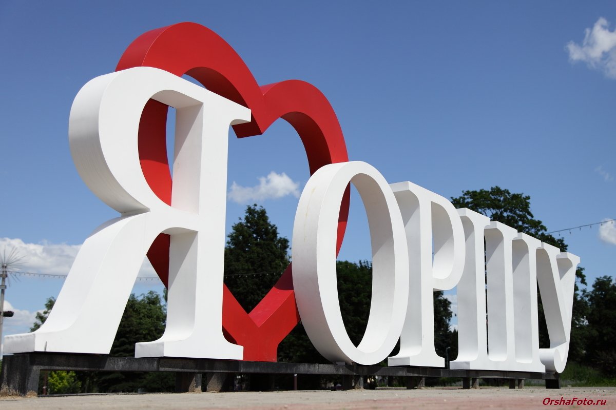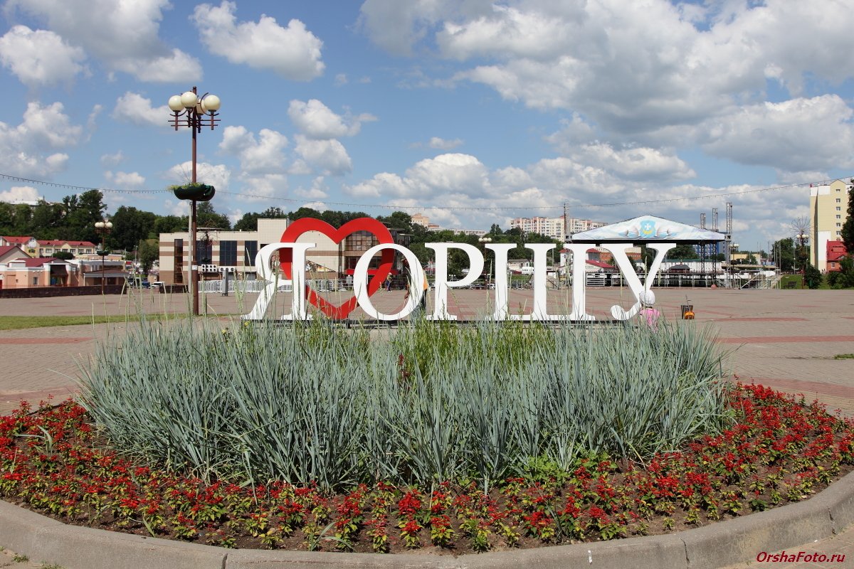Надпись "Я люблю Оршу" на площади перед ратушей