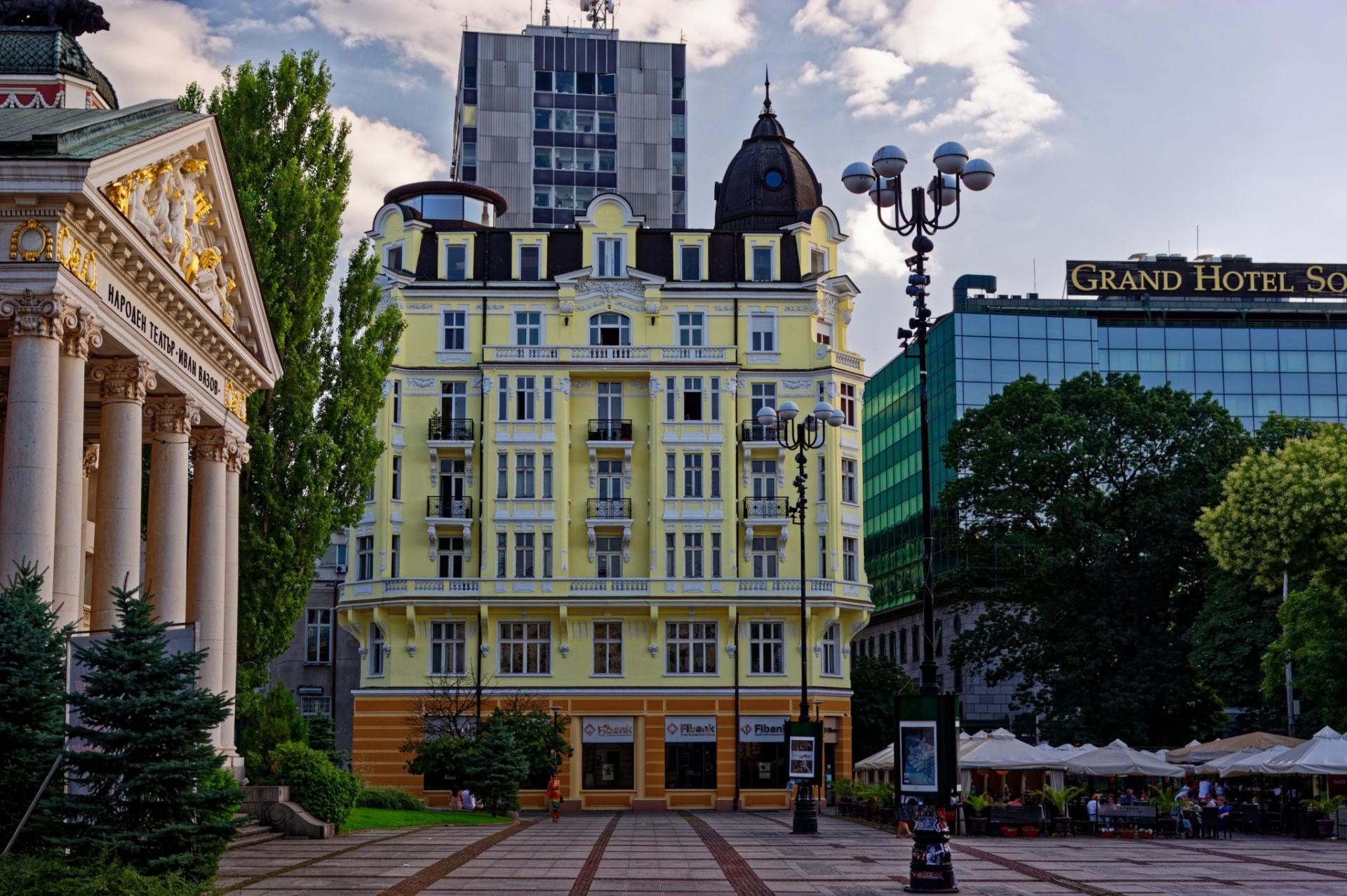 Красивое здание, неоклассическая архитектура, пешеходная зона, напротив театра есть красивые фонтаны и парк. Знаковое место для Софии.