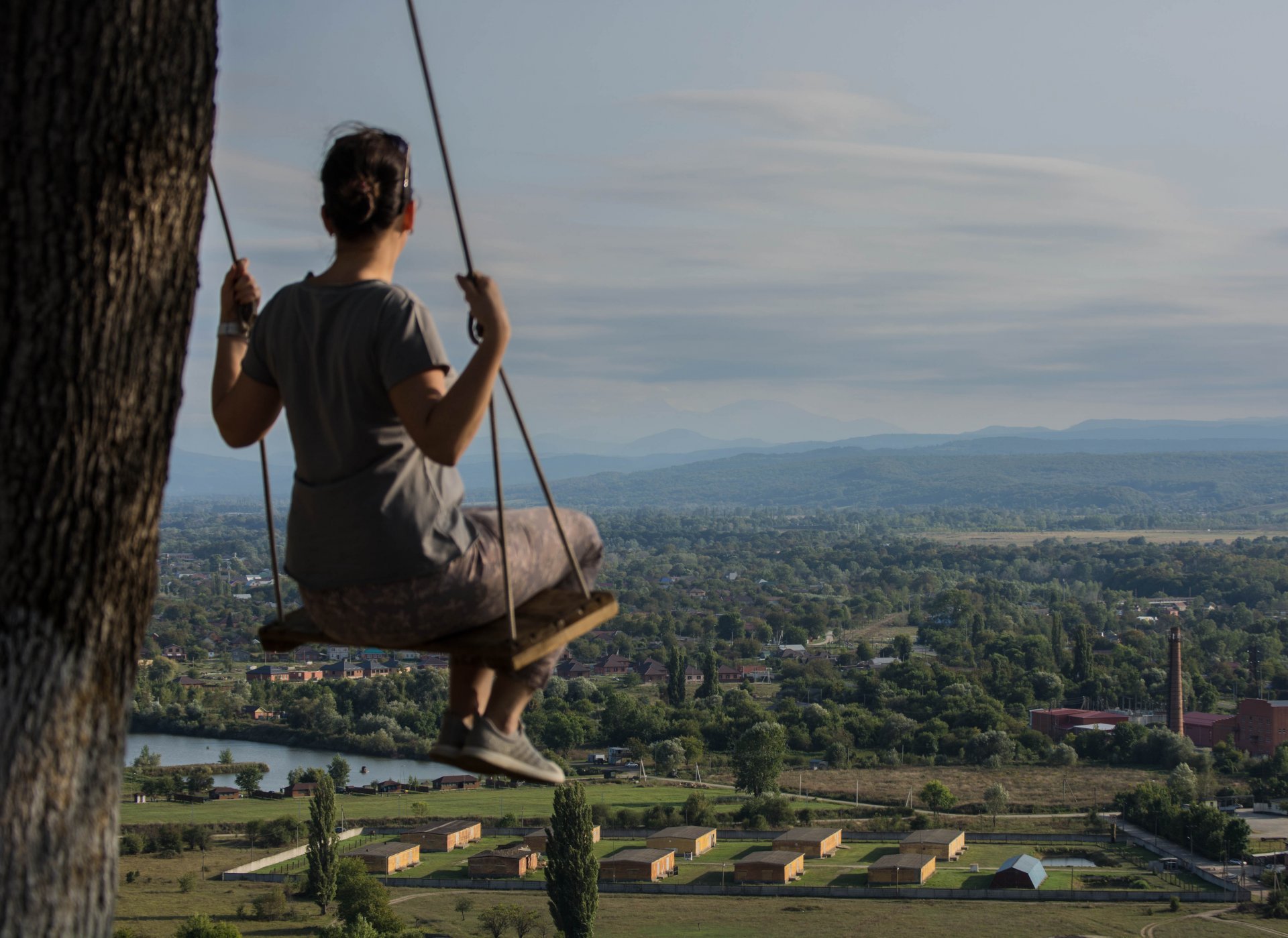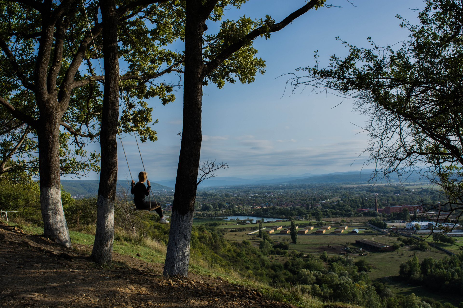 Живописное место. Качели с панорамным видом на город.