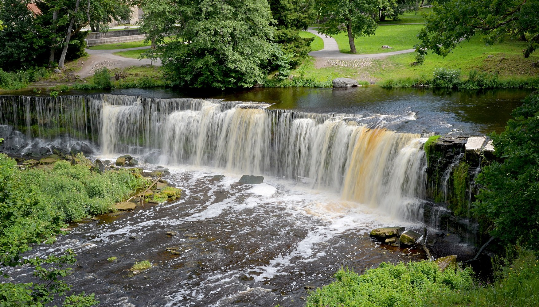 Очень красивая природа, красивый замок, водопад.