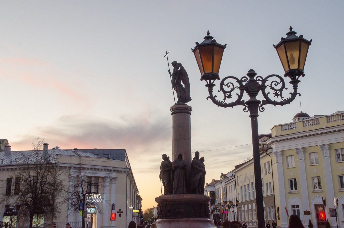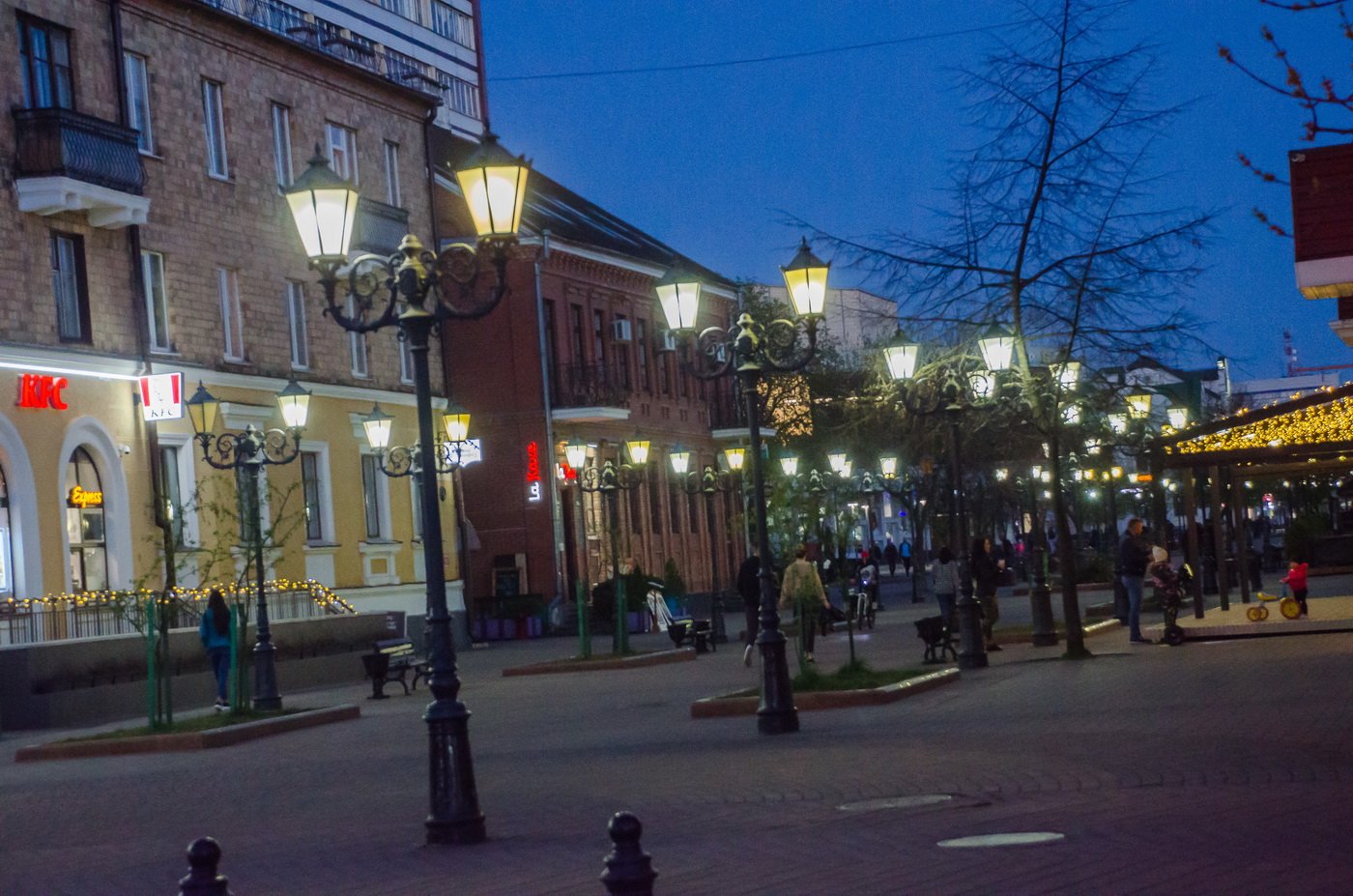 Пешеходная улица в центре Бреста, памятник 1000 летию Брест, улица зажигаемых фонарей,