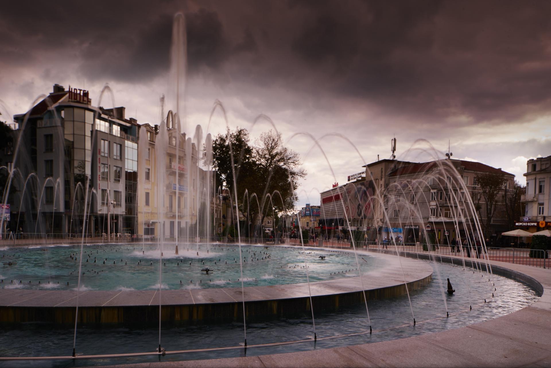 пешеходная зона, отсутствие транспорта, старые здания, оперный театр.