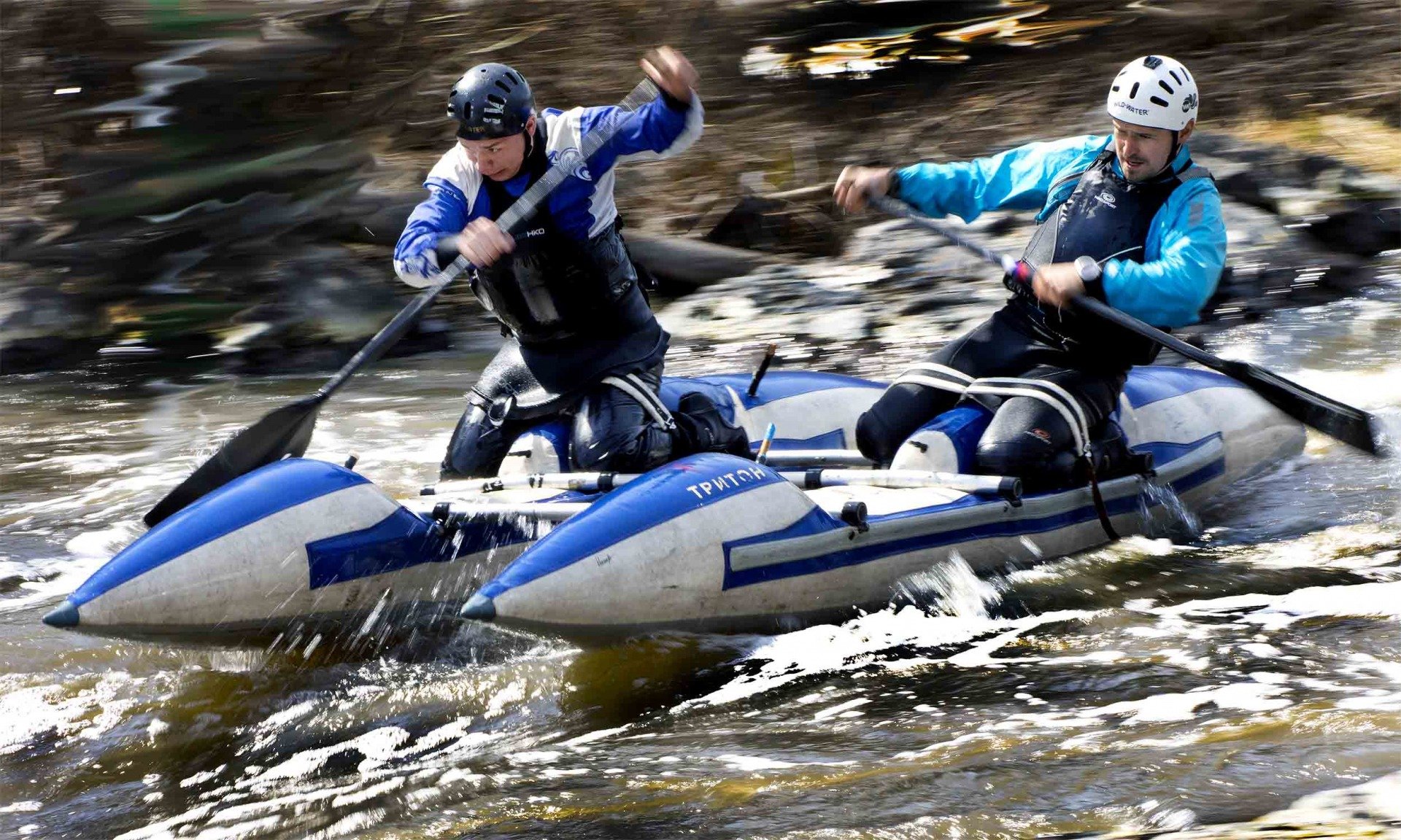 Снимок называется Борьба. Соревнования по водному слалому.