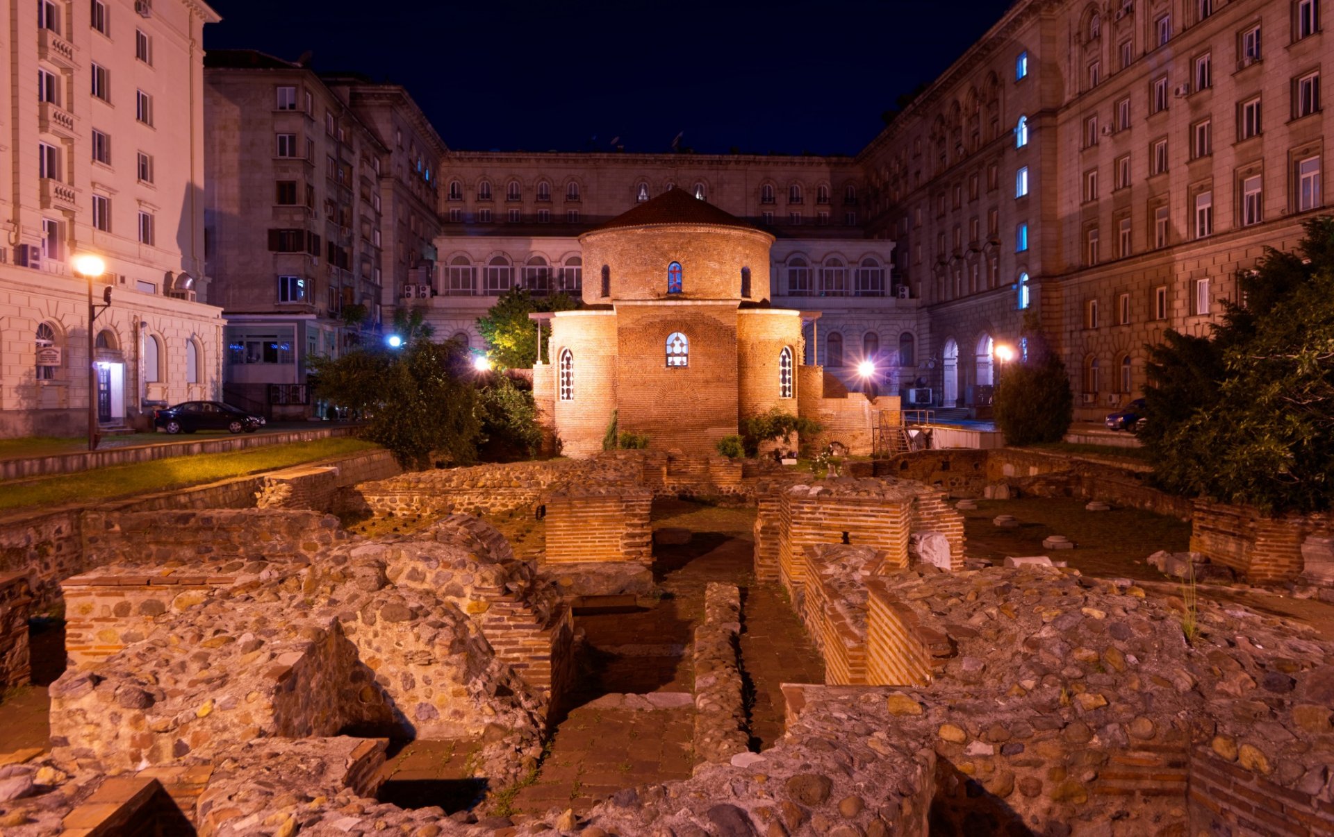 Очень старая сохранившаяся активная церковь во дворе, прекрасно окруженная зданиями Президентства, Министерства образования и Балканской гостиницы.