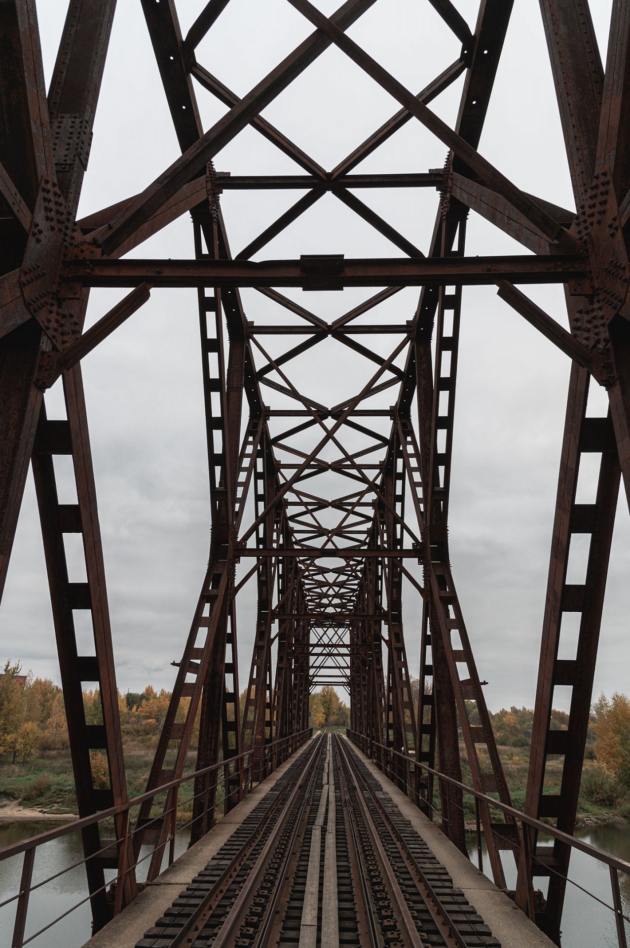 Брутальный старый ржавый недействующий железнодорожный мост через реку Которосль у фабрики "Красный Перекоп". Хотя поезда по нему не ездят, мост служит для прохода пешеходов.