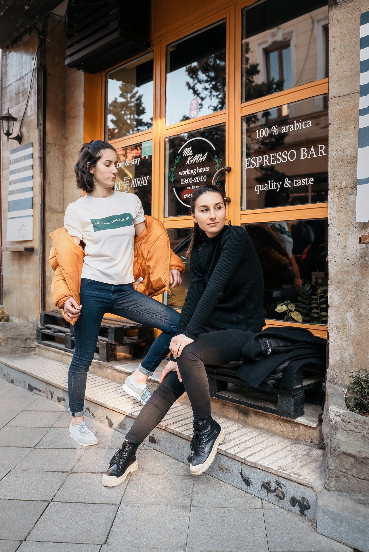 В этой локации я совместил 2 улицы, на одной расположена кофейня с отличным декором в оранжево-черных тонах - это (Мераба Костава), а другая соседняя (Ахмеда Мелашвили) послужит своим аккуратным видом для уличных фотографий.