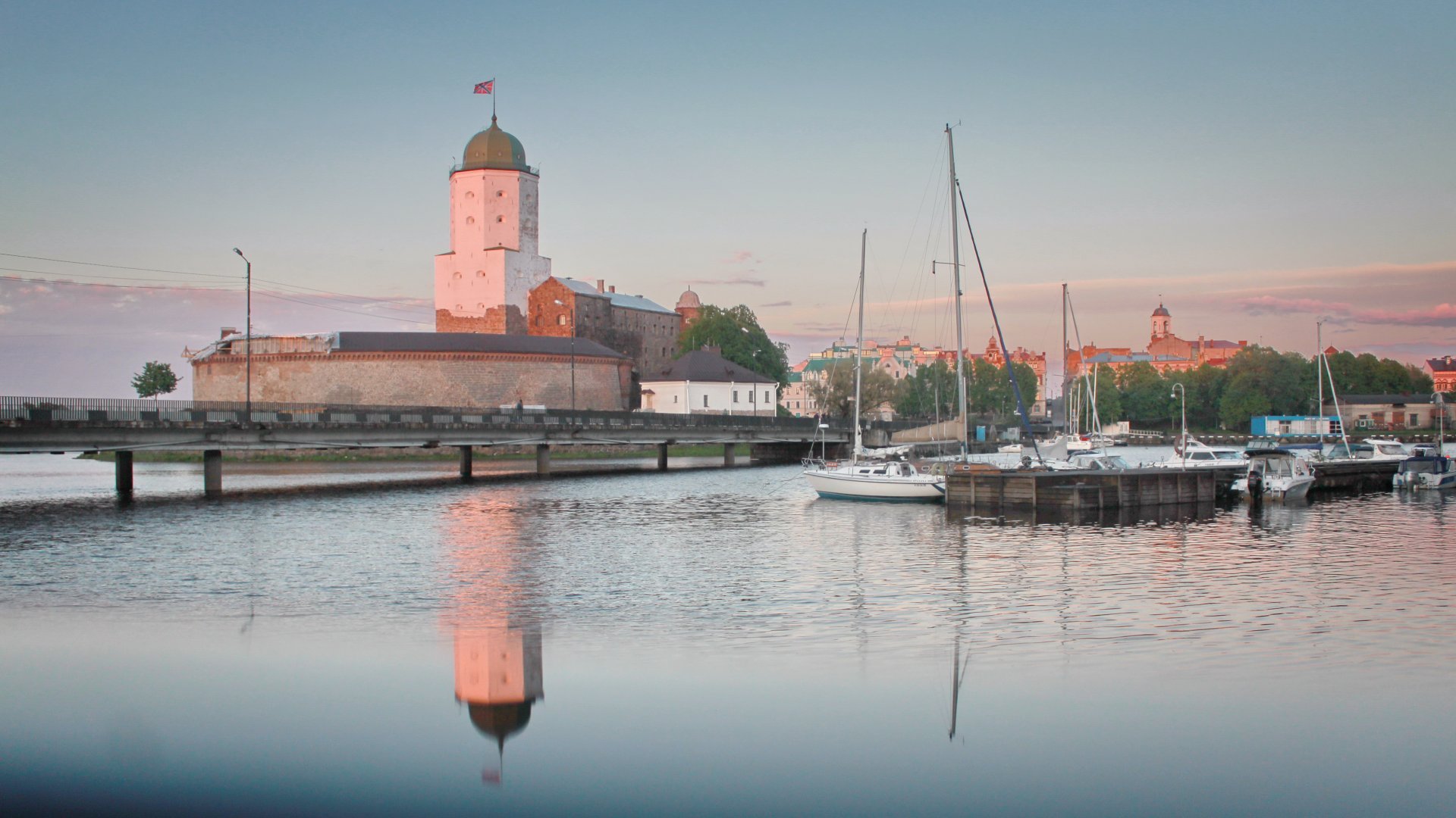 Стоит он на Замковом острове, окруженный водой. Белая башня Святого Олафа словно вырастает из гранита и вонзается в глубокую синеву северного неба. Это — единственная в нашей стране полностью сохранившаяся крепость европейского типа-Выборгский замок.